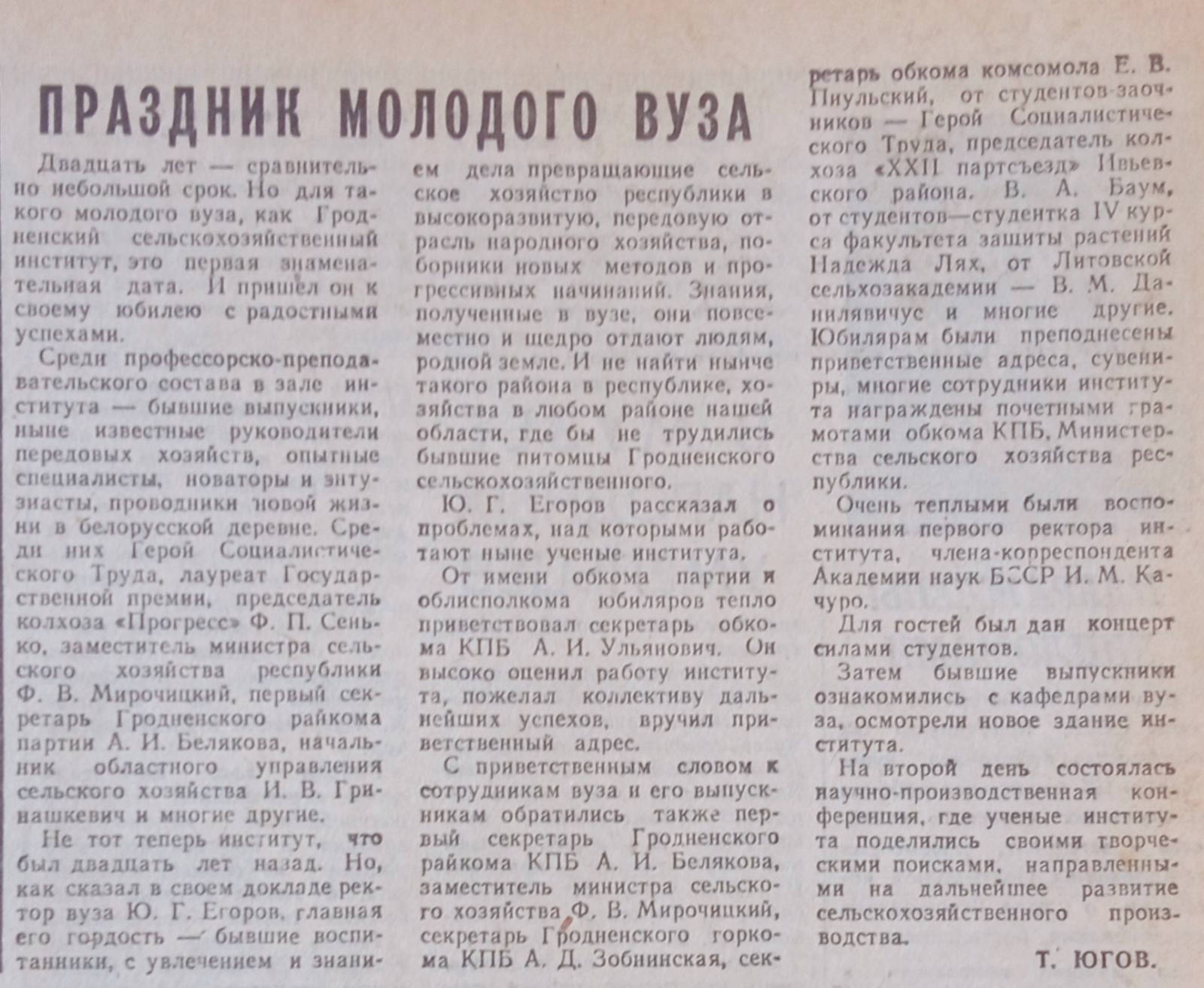 История университета на страницах «Гродненской правды»