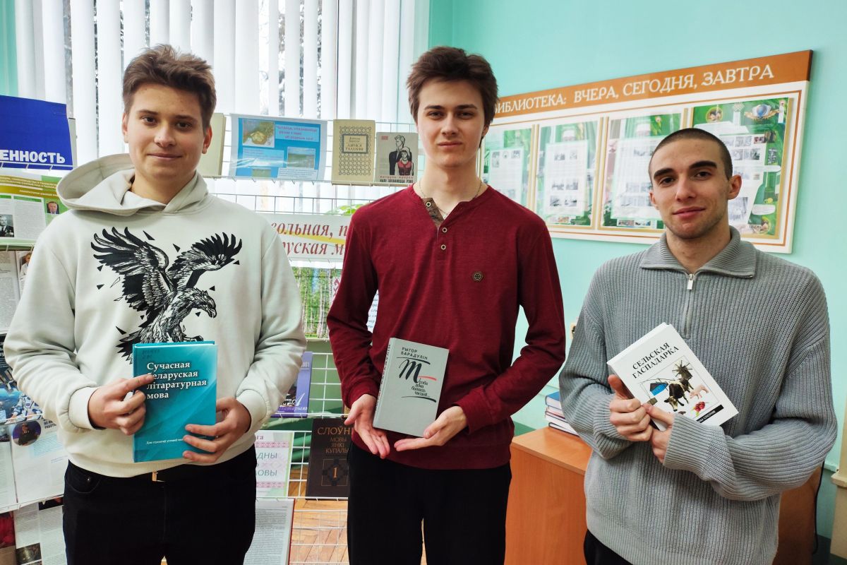 Запрашаем у бібліятэку, дзе да вашай увагі падрыхтавана выстава твораў сучасных беларускіх пісьменнікаў і класікаў беларускай літаратуры, творы юбіляраў 2026 года, а таксама вучэбныя дапаможнікі па сучаснай беларускай літаратурнай мове і прафесійнай лексіцы для студэнтаў розных спецыяльнасцей.